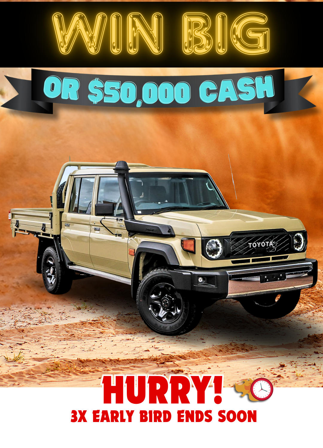 Take home a BRAND NEW Toyota Landcruiser 79 Series or $50,000 CASH!